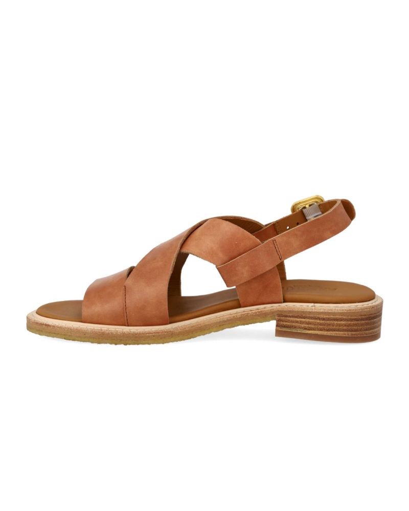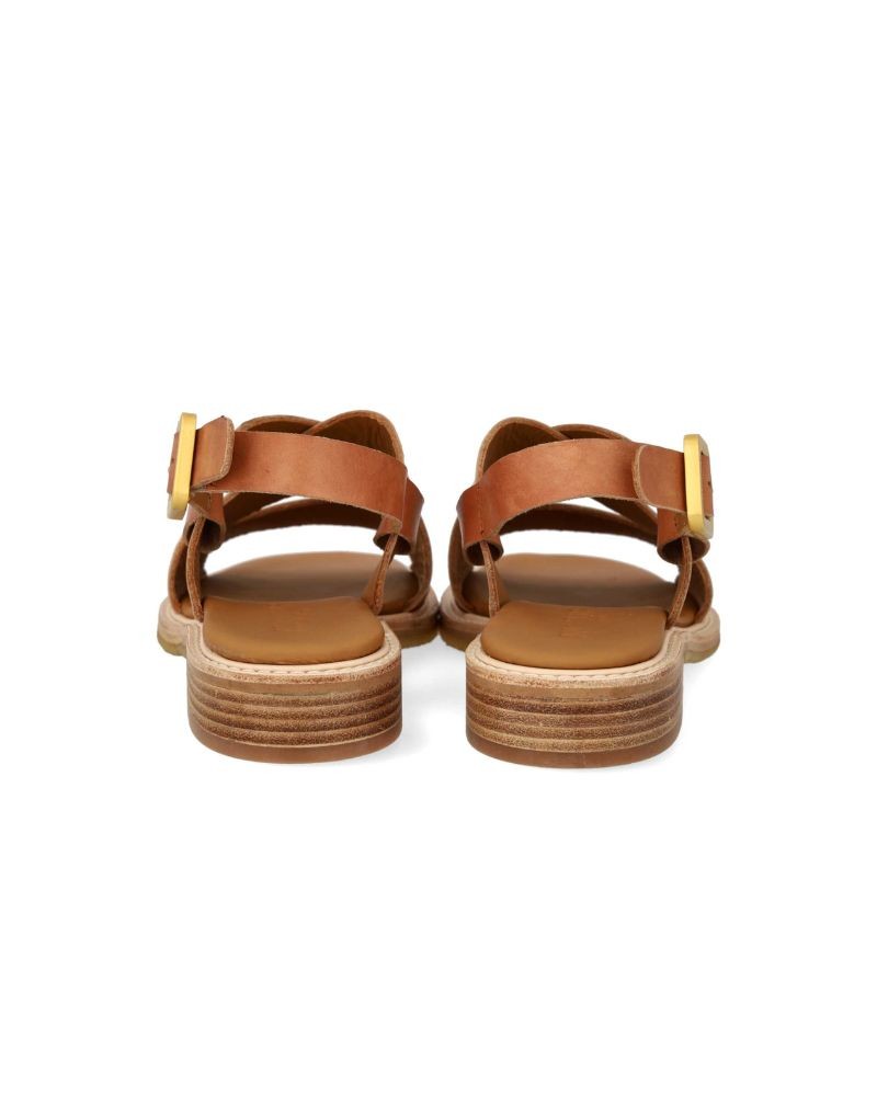 Klassisk sandal i cognac glat skind med læderrem og dekorativt logospænde. Sandalen har rund tå, polstret indersål og for i kromfrit læder. Sandalen har justerbar ankelrem med karakteristisk firkantet guldfarvet logo spænde. Med let og fleksibel tunitsål med FSC-certificeret crepegummi i fornybar naturgummi på ydersålen for ekstra komfort. Fremstillet i naturligt og åndbart læder. Designet i Danmark og håndlavet i Portugal.