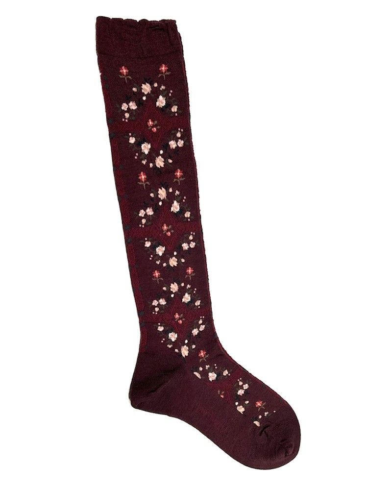 Fine Rose Wall knæstrømper i bordeaux fra japanske Antipast.