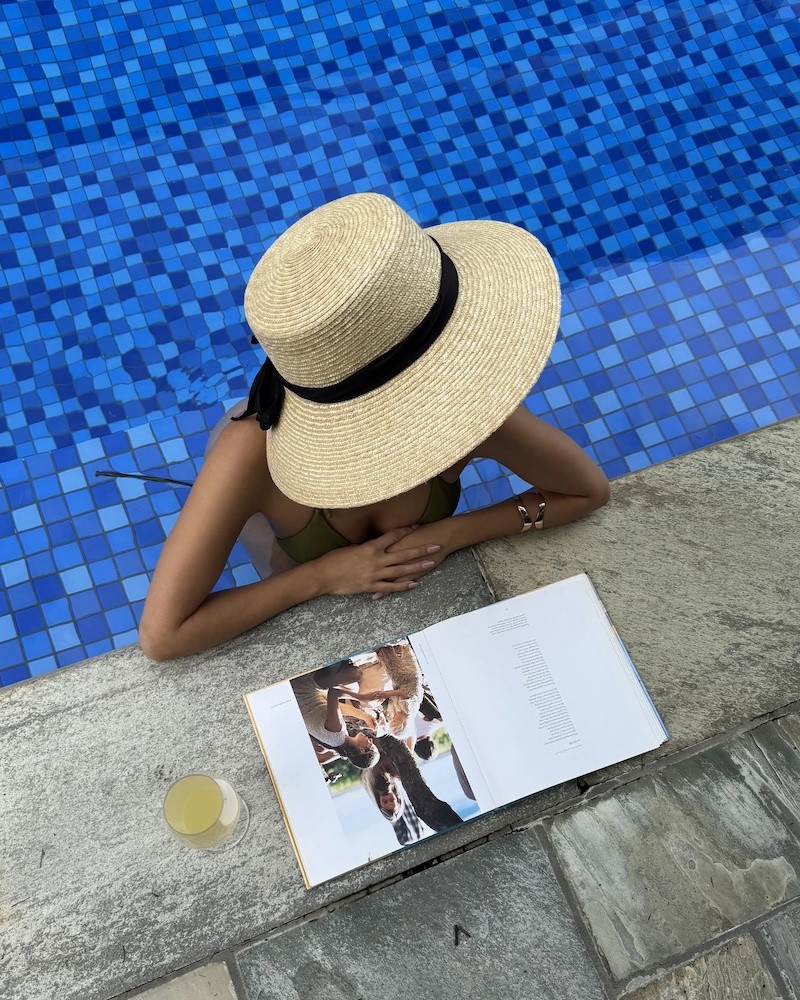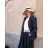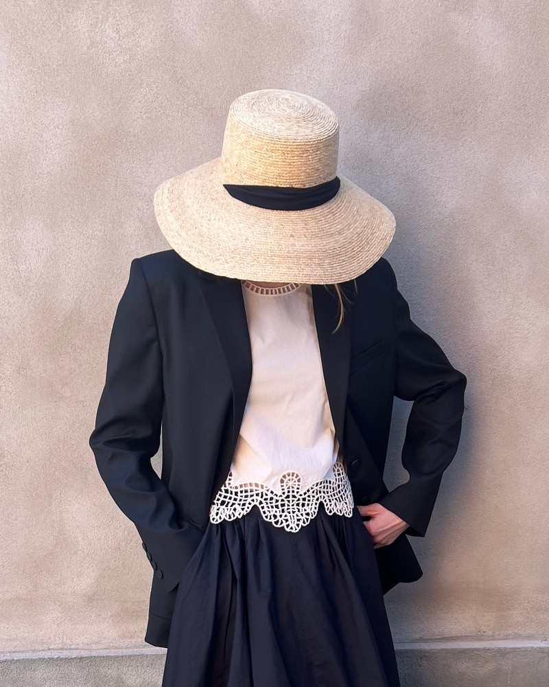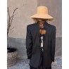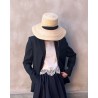 Elegant naturfarvet Vera hat fremstillet af naturlige strå med aftageligt sort bomuldstørklæde. Vera er designet med SPF 50 solbeskyttelse, og kan justeres indvendigt, så størrelsen kan tilpasses til perfekt pasform. Skyggen måler ca. 9 cm i bredden. Tørklædet giver et stilfuldt touch og hjælper med at holde hatten sikkert på plads.