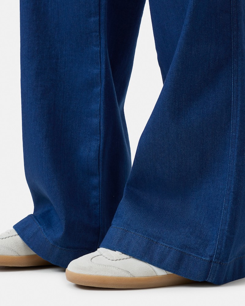 Aria jeans i klar blå vask i blød super stretch bomulds denim og lyocell. Fremstillet i Italien af Candiani stretch denim, og usædvanligt behagelige at have på. Aria har høj talje med brede bælte-loops og påsyede lommer foran. De lange ben med vidde og fuld længde. Findes i to længder.