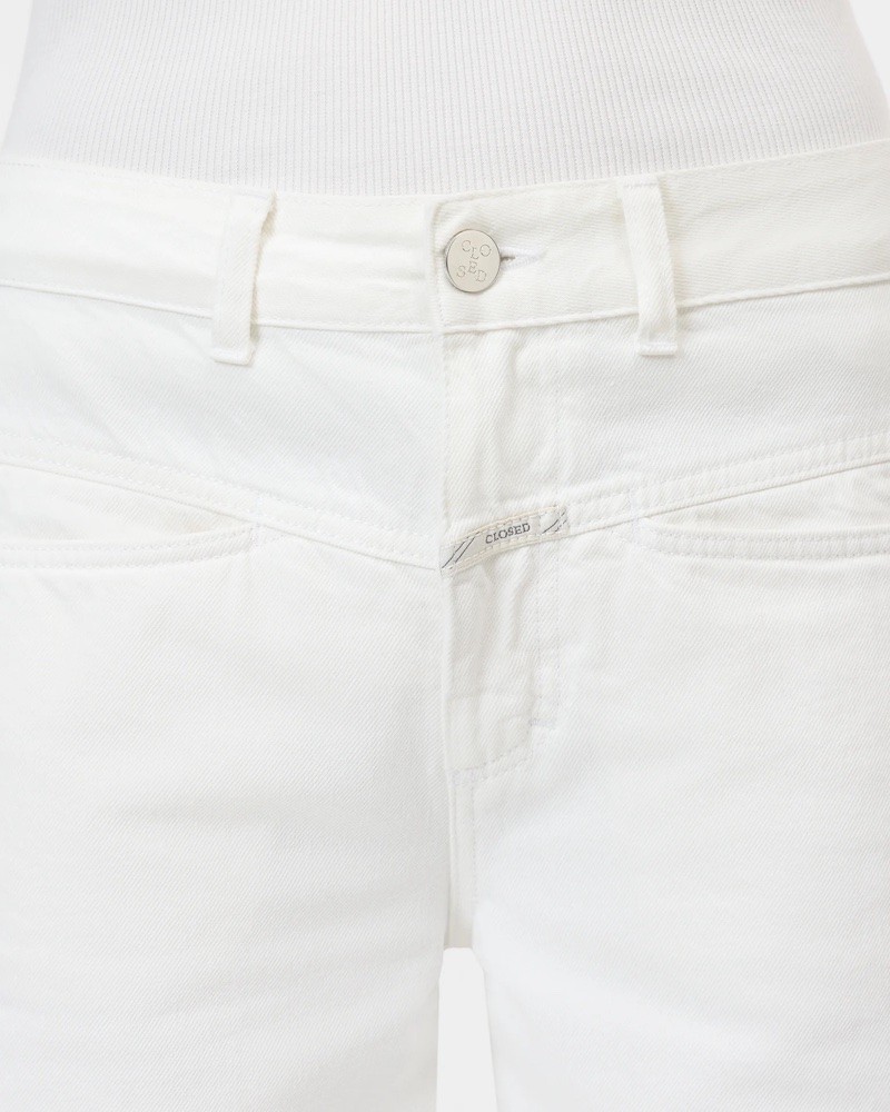 Tori-X er en ny jeans model fra Closed, denne i 100% hvid, blød bomuld uden stræk. Tori-X har medium talje og har barrel fit dvs. benene har en let afrundet pasform. De har stiklommer foran, en kile ned langs siden og almindelige baglommer.