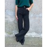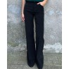 Amber wide leg bukser i blød sort babyfløjl  med lidt stræk. Amber har medium høj talje og er tætsiddende for oven. De har lange ben med vidde og flare for neden. Med bæltestropper, lynlås lukning, baglommer og Dondup logo label bag på.