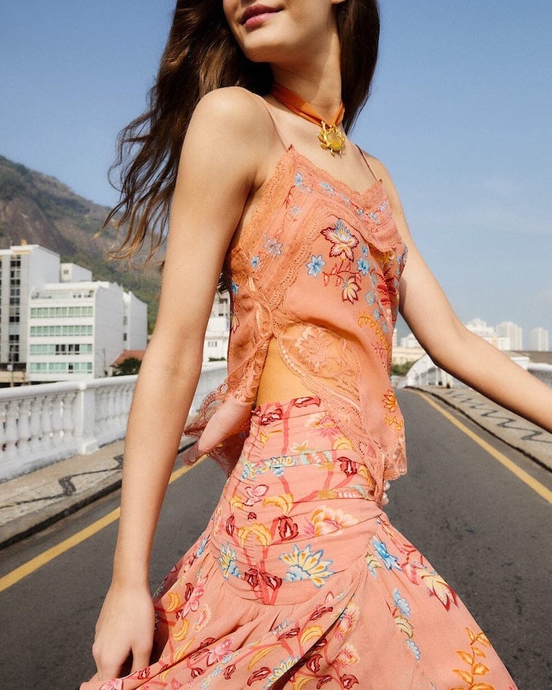 Farm Rio Boho Enhance Lace Top Mocha.