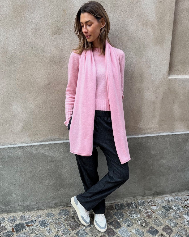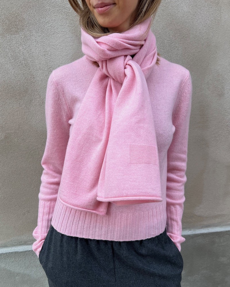 Eksklusivt tørklæde fra Guest In Residence i 100% ren, blød cashmere i farven 'daybreak - skøn bubblegum pink. Let strikket og med jersey rullekant.