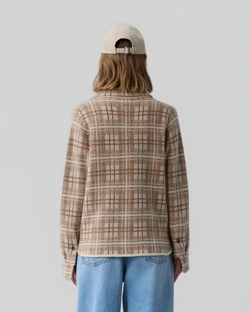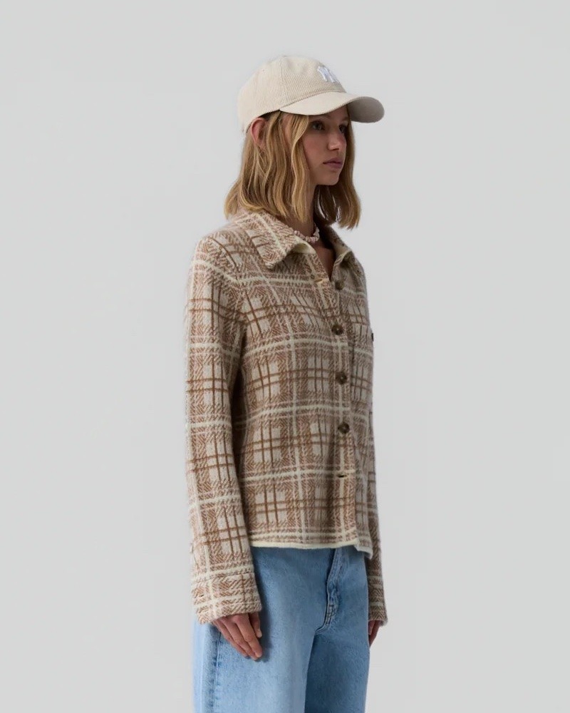 Dylan plaid skjorten er en feminin hyldest designet med inspiration fra amerikansk western stil. Denne i beige, cognac og ecru ternet mønster med en afslappet pasform. Dylan har skjortekrave, lange ærmer med knapmanchet og er gennemknappet foran. Den har en enkelt brystlomme, og fungerer perfekt både som mellemlag og som 'over-shirt'. Kvaliteten er 100% ren og blød cashmere fra Mongoliet.