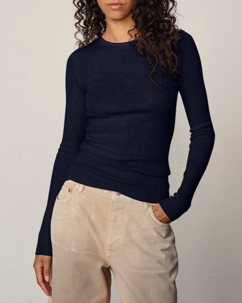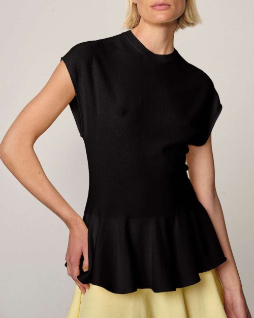 Clark sorte strik bukser fremstillet af let og blød viskose og nylon. Bukserne har en afslappet silhuet med elastisk linning, designet til lethed og bevægelsesfrihed. Den glatte strik med stretch giver et elegant udtryk. Kan matches med Sean blusen i samme kvalitet.