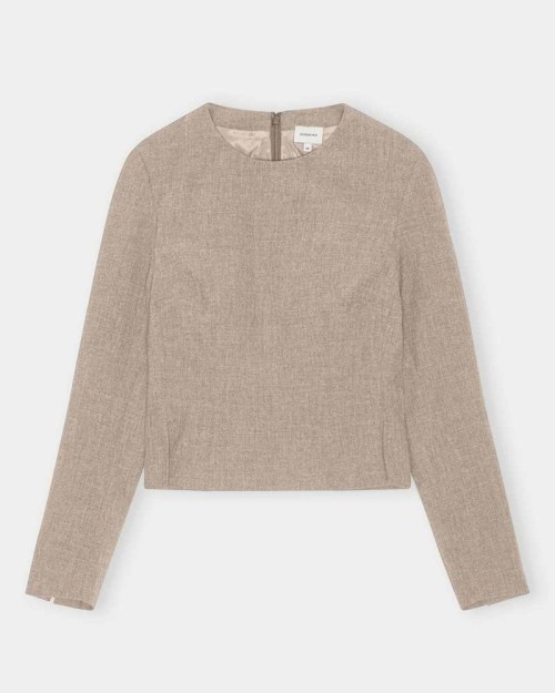 Herskind Kimberly Mid Waist Pants Wood - Beige Melange.