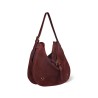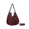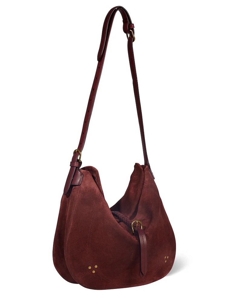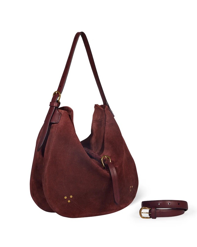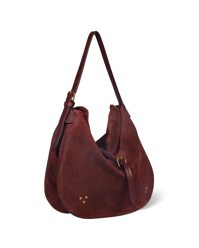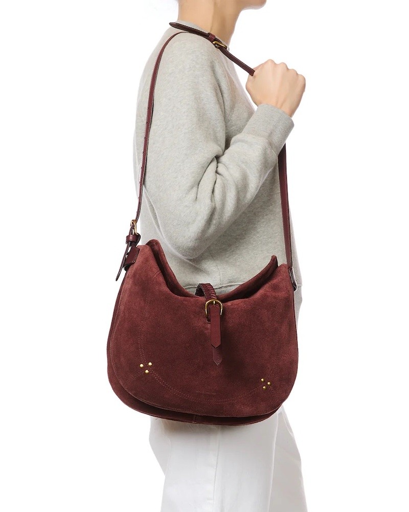 Luis er en ny model fra Jerome Dreyfuss i bordeaux ruskind med remme af glat skind. Luis kan både bruges som skuldertaske og crossbodytaske, da den har to-delt skulderrem. Indvendigt har den to rum, to lynlåslommer, en flad lomme og en praktisk krog til nøgler. Den har åben top med en dekorativ flettet rem henover midten.
