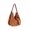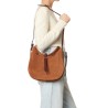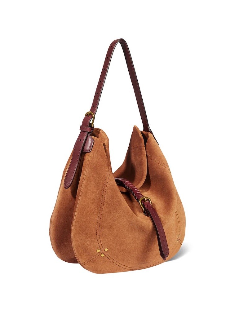 Luis er en ny model fra Jerome Dreyfuss i karamelfarvet ruskind med rem af bordeaux glat skind. Luis kan både bruges som skuldertaske og crossbodytaske, da den har to-delt skulderrem. Indvendigt har den to rum, to lynlåslommer, en flad lomme og en praktisk krog til nøgler. Den har åben top med en dekorativ flettet rem hen over midten.
