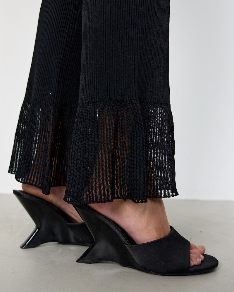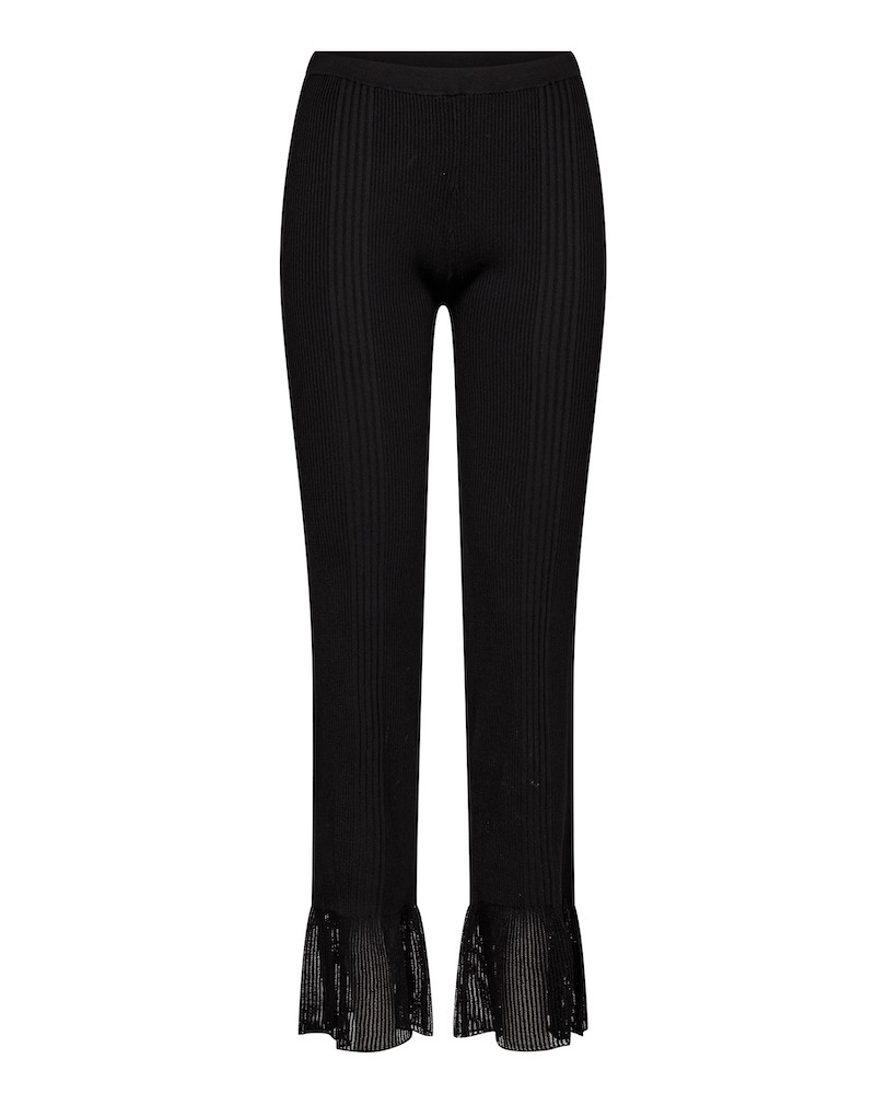 Leggings med fin ribbet struktur i sort, blød viskose blanding. Bukserne har elastisk talje, og sidder tæt til benet og er afsluttet med en udslået kant med vidde.