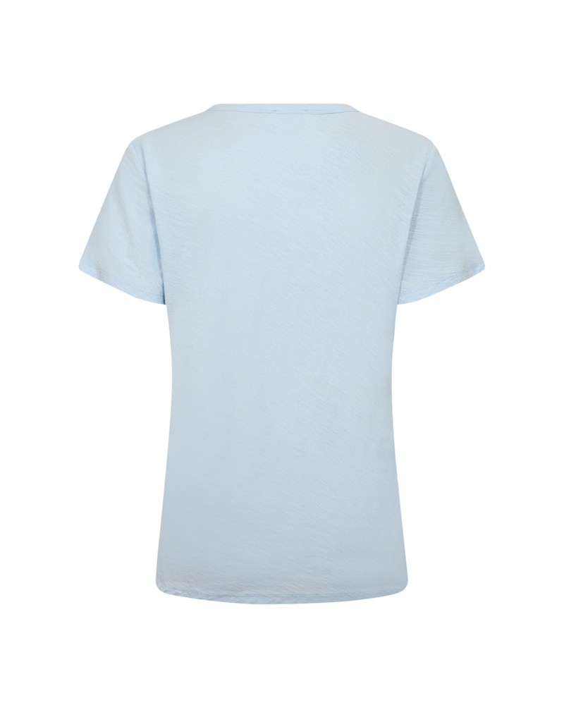 Kortærmet basis t-shirt i lyseblå blød økologisk bomuld med rund hals i regular fit og med afrundede kanter forneden.