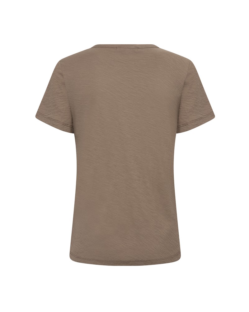 Kortærmet basis t-shirt i mørkebrun blød økologisk bomuld med rund hals i regular fit og med afrundede kanter forneden.