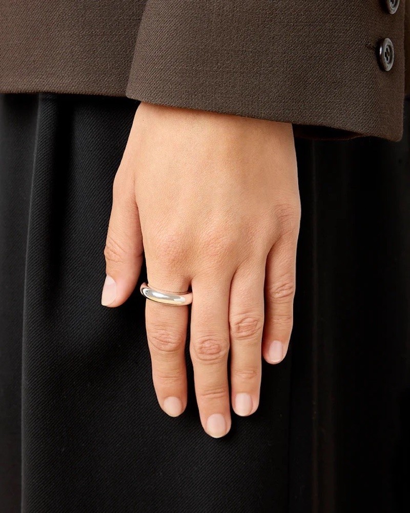 The Evie ring fra Lié Studio i sterling sølv. Evie er opkaldt efter Evie Henderson, der afspejler kollektionens ubesværede skønhed. Dens minimalistiske silhuet og blanke finish gør den uendeligt brugbar - et stille statement, der komplementerer ethvert look.