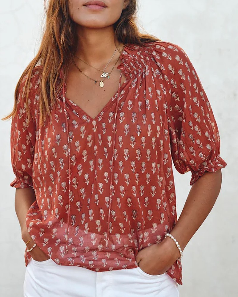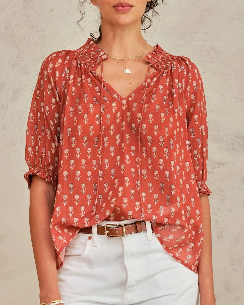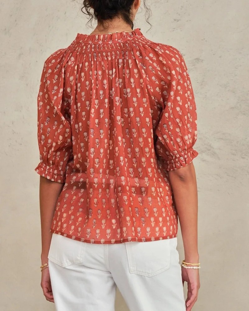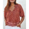 M.A.B.E Ari Print Short Sleeve Top Rust - Teglrød.