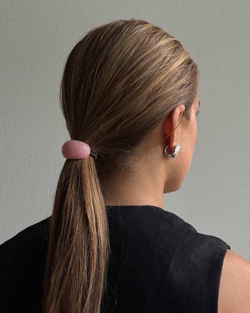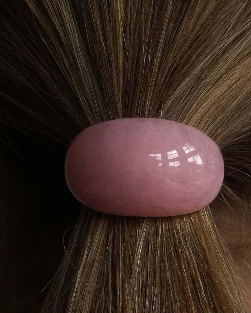 Romy hårelastik i sort med bubblegum pink vedhæng af harpiks - perfekt håraccessory som kan give dit hverdagslook et legende, elegant touch.