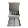 Stort skrin til opbevaring af smykker og accessories. Med indvendig skuffe som kan løftes op, og mange praktiske rum.
