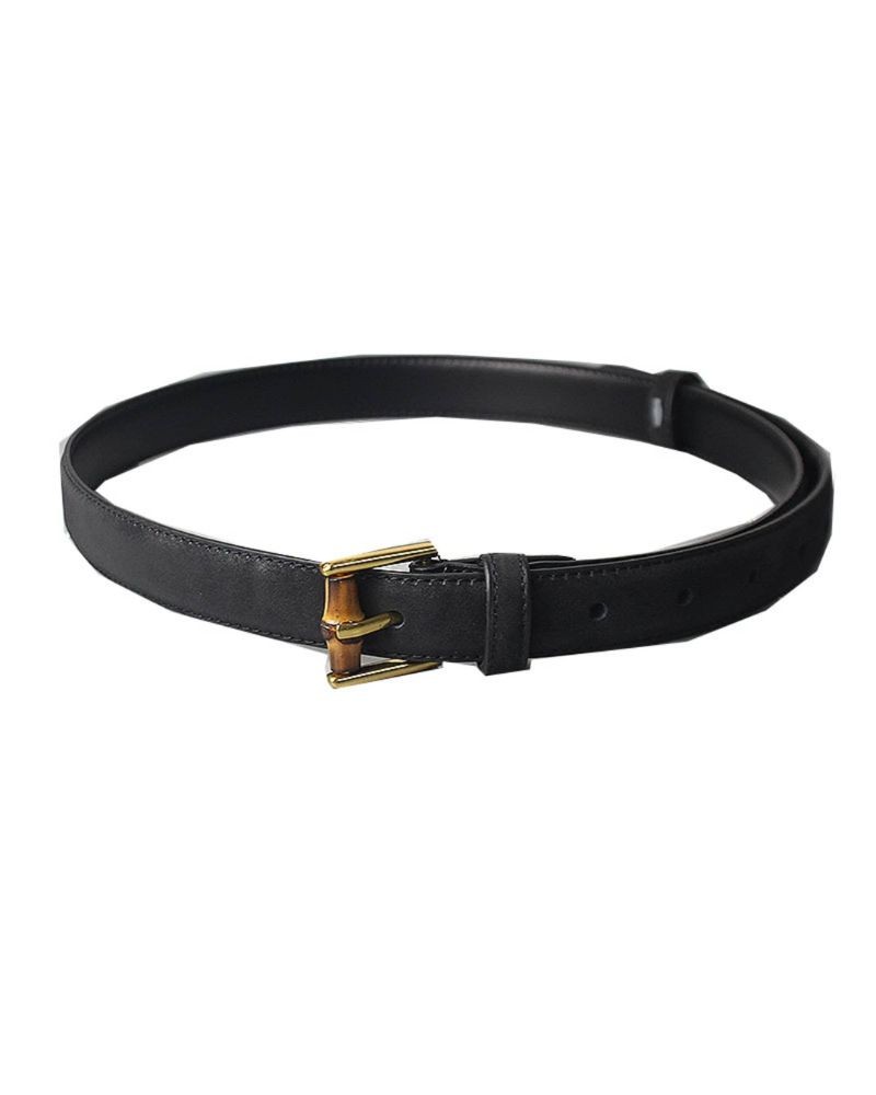 Bælte i sort nappa læder med firkantet spænde med bambus og guldfarvet hardware.