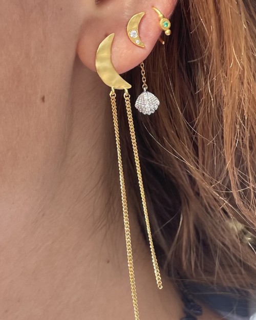 Skøn forgyldt ørering med månevedhæng med hvid ferskvandsperle.