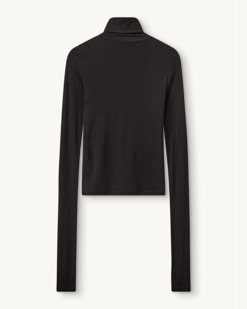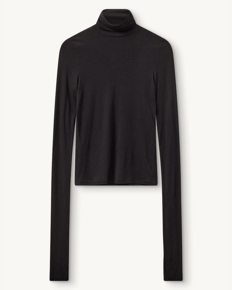 Perfekt fin sort rullekrave i blød lyocell- og uldblanding. Bree Long har et tætsiddende fit, med ekstra lange ærmer.