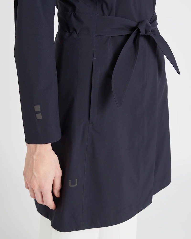 Elektra ultralet jakke i navy fra det norske brand UBR. Jakken har høj krave med aftagelig hætte, et justerbart bælte i taljen og skrålommer med lynlås i siden. Jakken er 100% vind- og vandtæt, og har skjult 2-vejs YKK lynlåslukning foran. Designet i et 4-vejs strækmateriale der optimerer bevægelsesfriheden, og har en sømløs konstruktion. Med høj åndbarhed og 20.000 mm vandtæthed.
