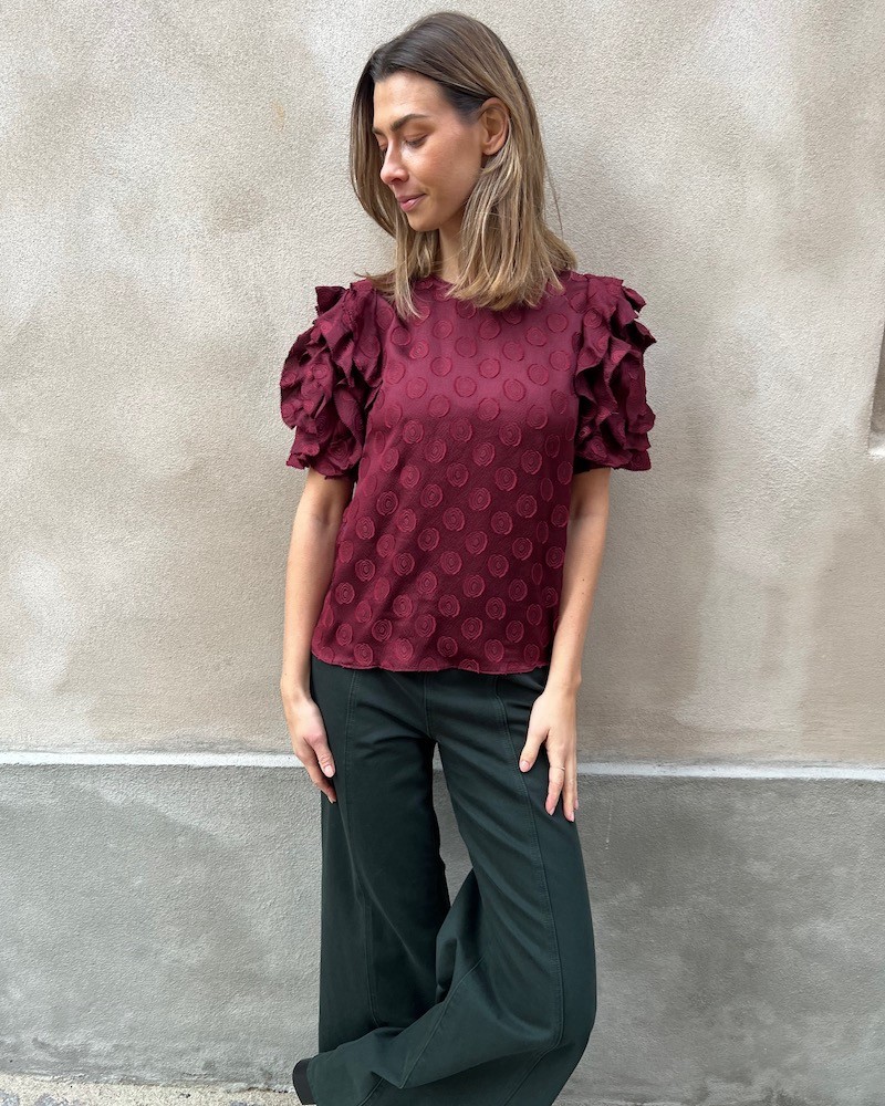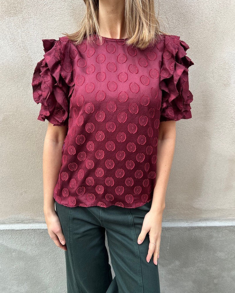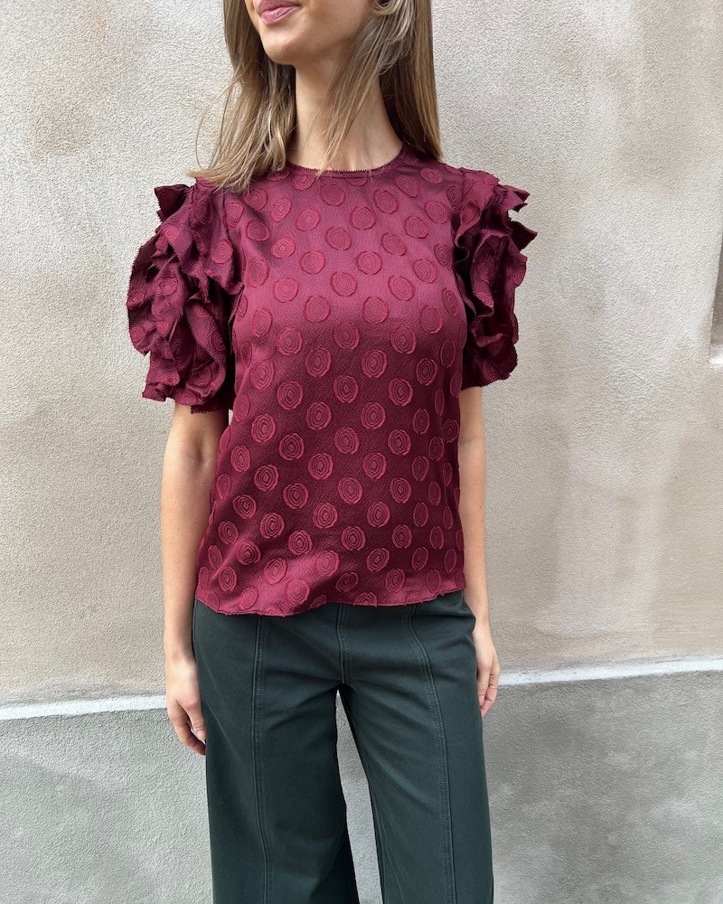 Ulla Johnson Opal Puff Sleeve Top Claret - Bordeaux.