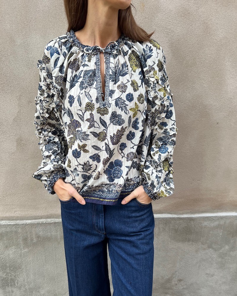 Ulla Johnson Azrou Cotton Long Sleeve Blouse Porcelain.