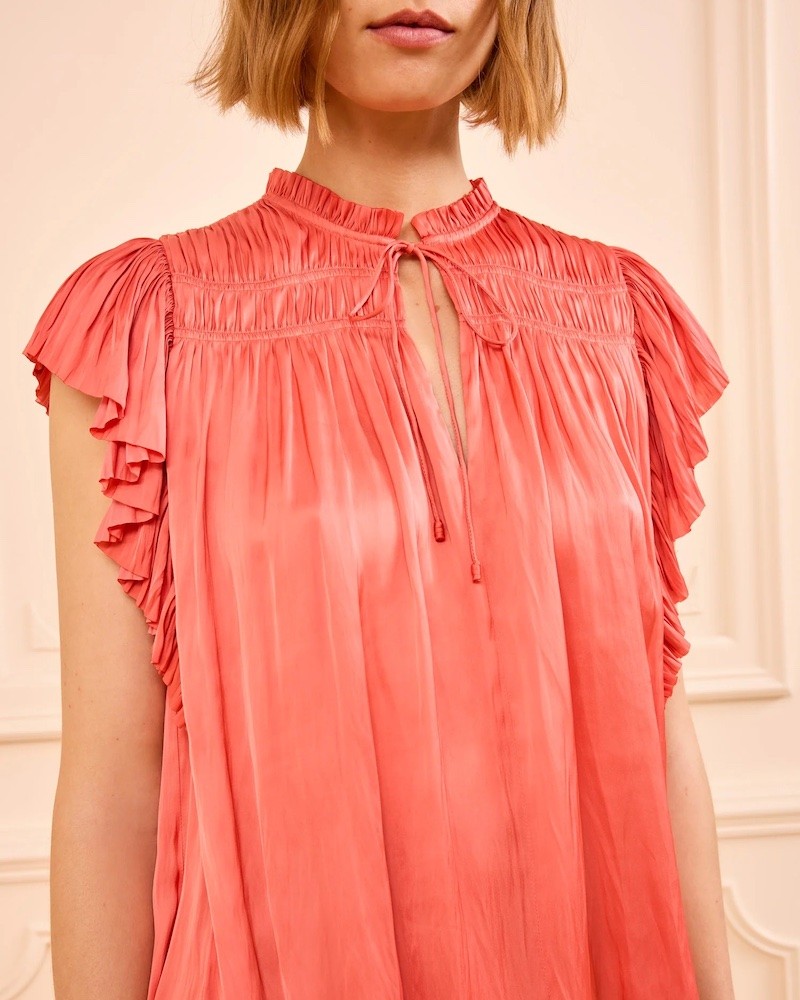Ulla Johnson Agosta Flutter Sleeve Top Coral.