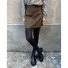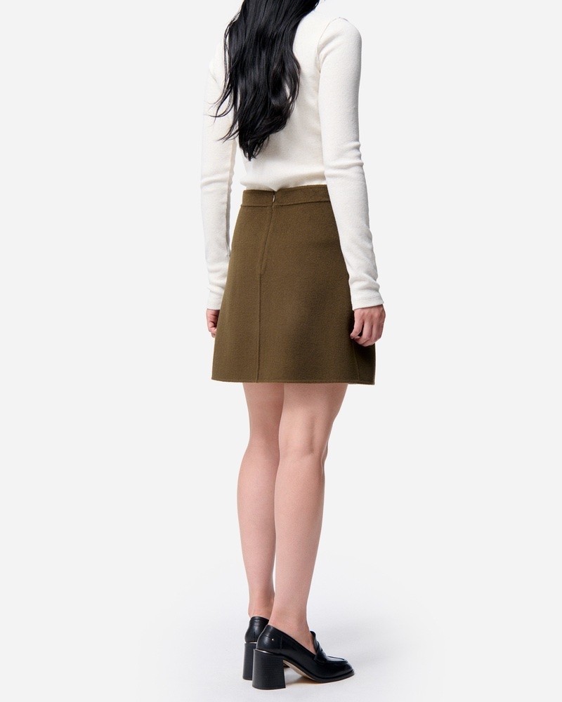 Juna kort nederdel i blød uld blanding i skøn army. Nederdelen har fast linning, og en let a-facon med en længde til over knæet. Delikat med en syning midt fór både foran og bagpå. Uden lommer og med lynlås lukning bag på.