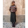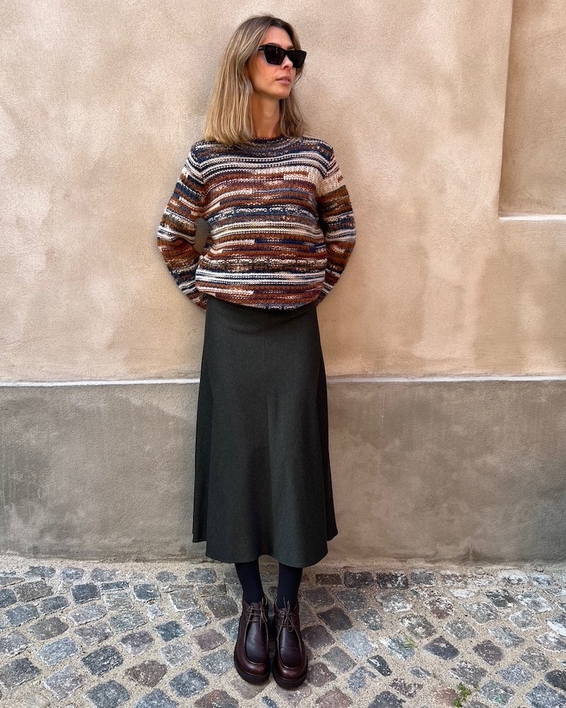 Fabrizio multifarvet strik i stribet design mønster. Strikken har rund halsudskæring, lange ærmer og en regulær pasform med et lige snit. I multi kulørte og delikate efterårsfarver som cognac, brun, khaki, petrol, bordeaux, blå og ecru. Kvaliteten er et blødt mix af forskellige uld kvaliteter.