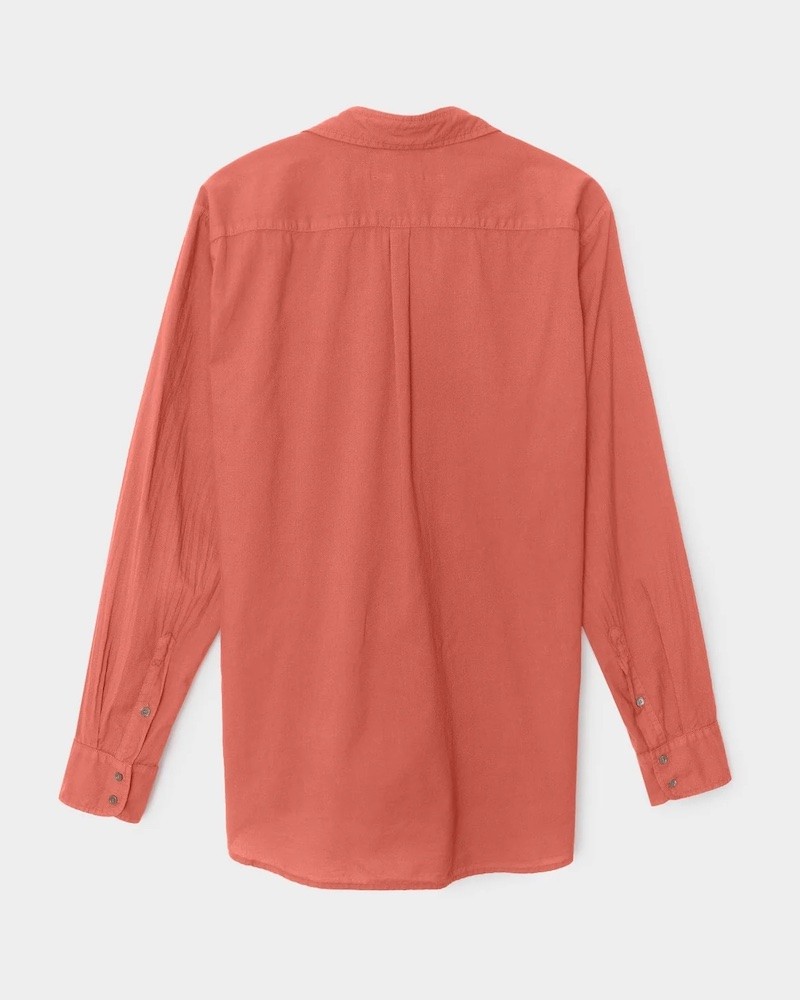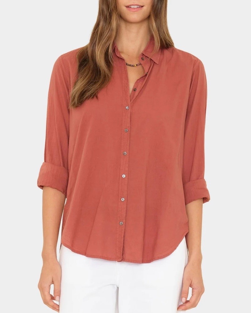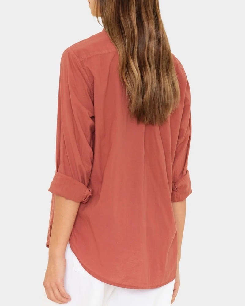 Beau skjorte fra Xirena i rustfarvet let vævet bomuldspoplin. Beau er designet med inspiration fra den klassiske herreskjorte, og har et maskulint og enkelt udtryk. Den har smalt revers, lange ærmer med manchet og let afrundet kant for neden. Kvaliteten er let transparent, blød og ekstremt behagelig. Perfekt at style lag på lag under en strik eller med en top under.
